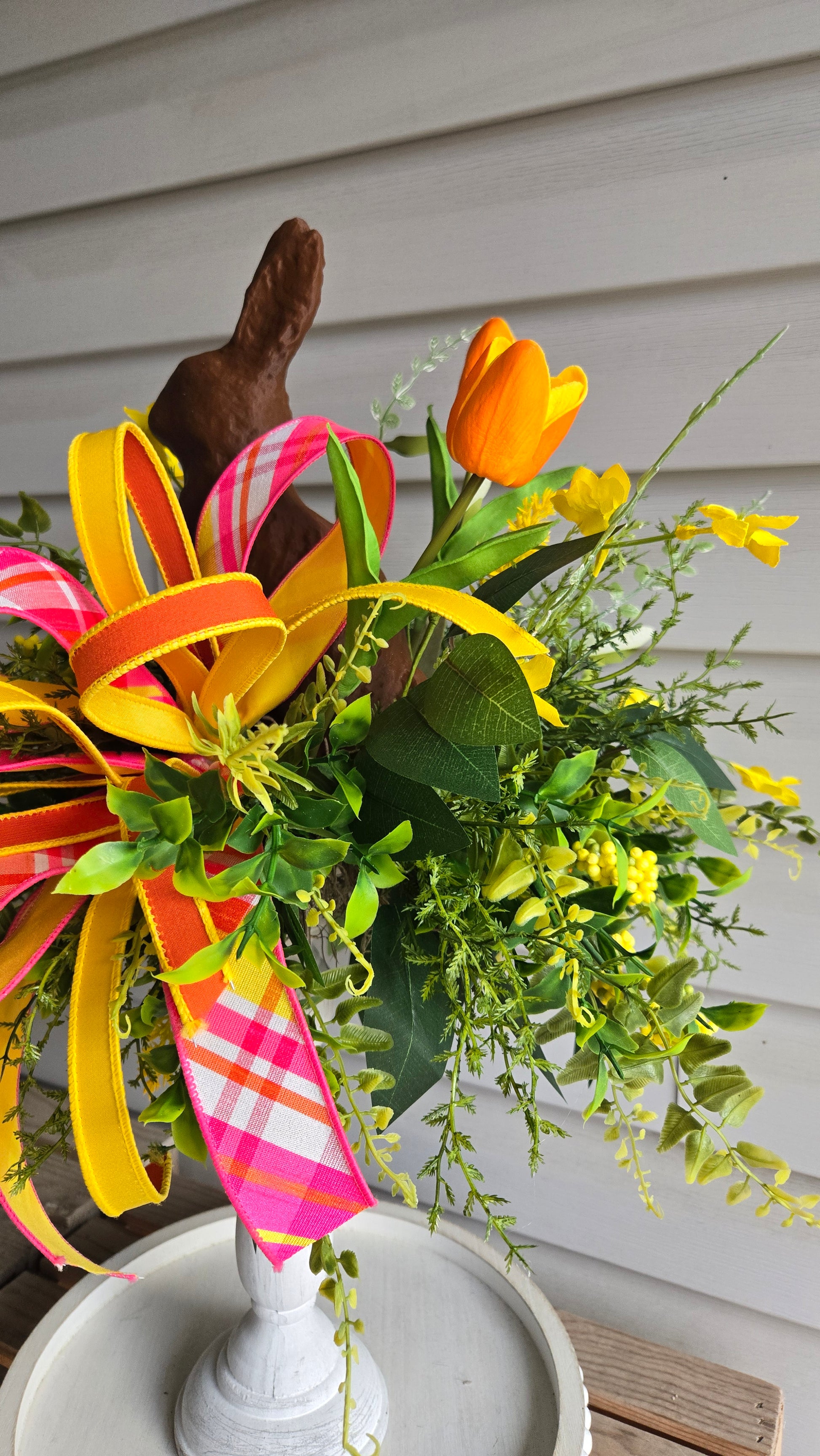 Chocolate Bunny Candlestick Easter Centerpiece | Spring Floral Arrangement with Tulips