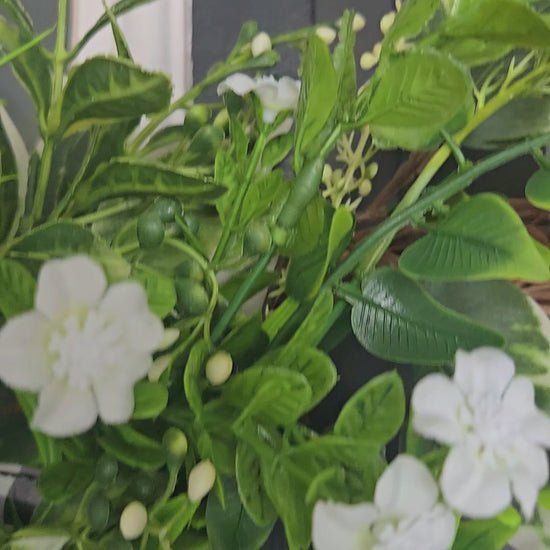 • Measures approx. 22" W x 30" L from greenery tip to tip