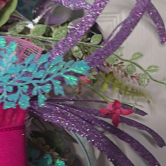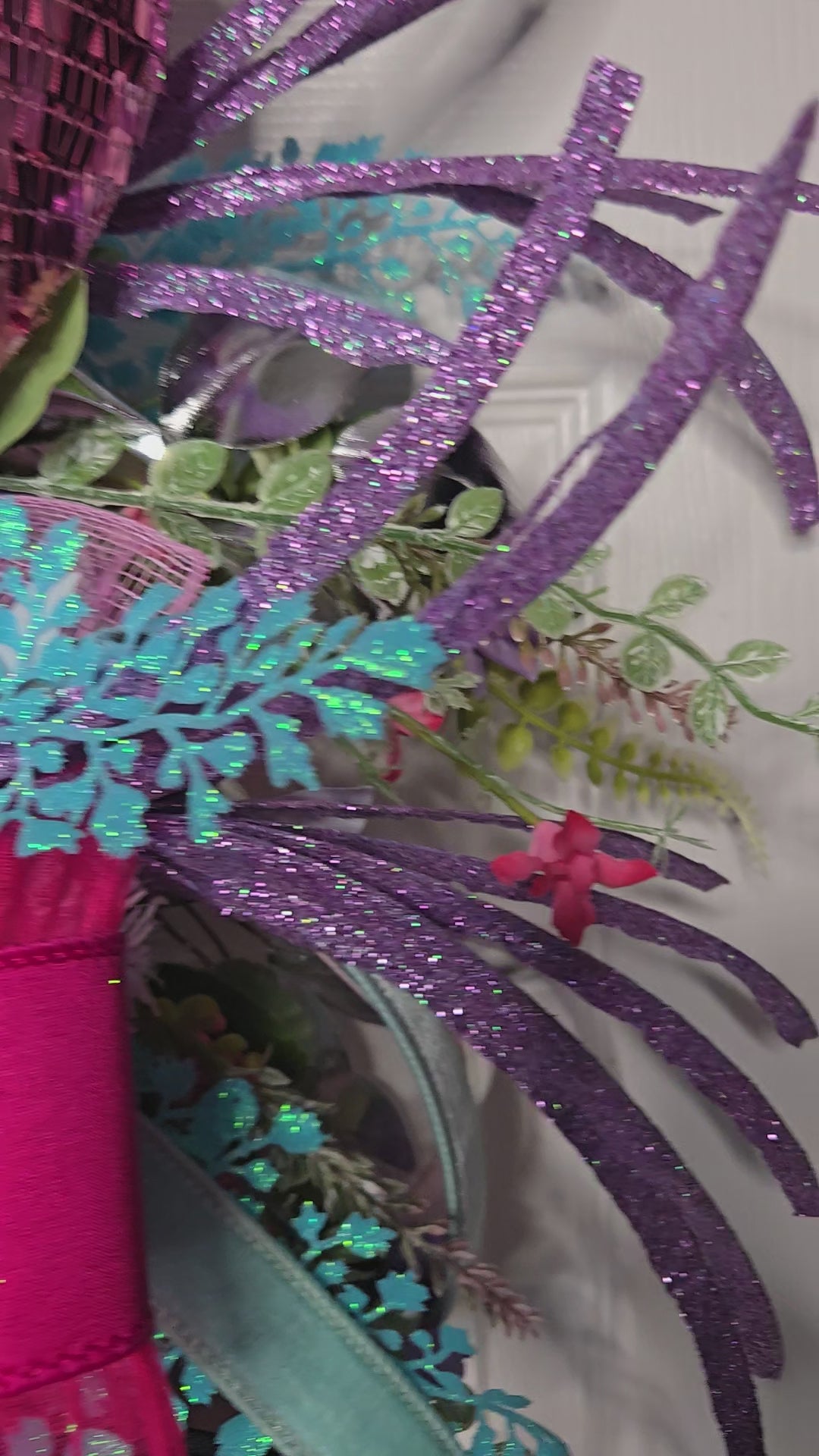 Bring bold, colorful romance to your door with this one-of-a-kind Valentine’s Day LOVE Swag! Designed in an irresistible mix of hot pink, lavender, aqua, black, and white, this whimsical show-stopper adds playful charm and high-end boutique style to any space.